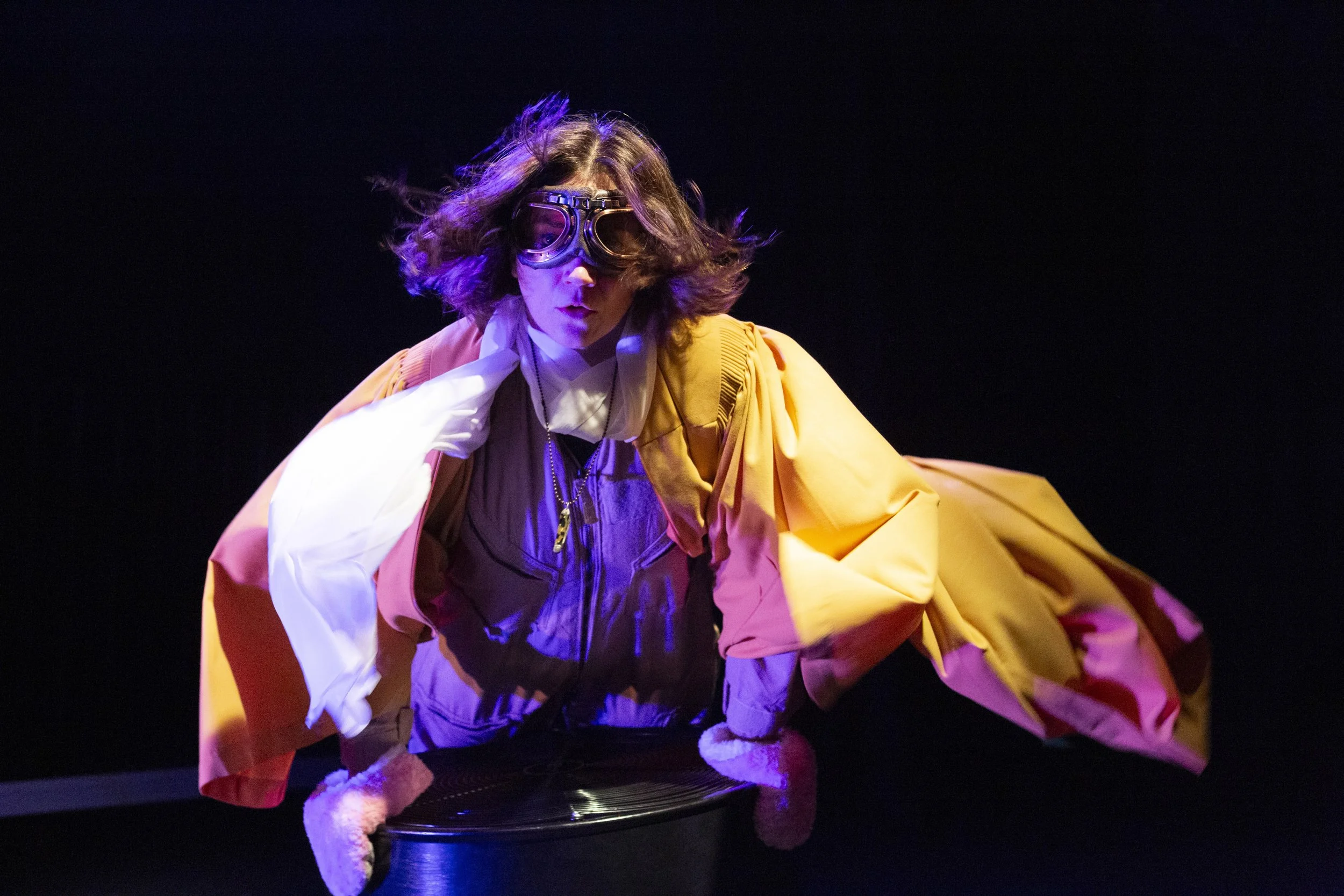 flights for future generations draws from the history of women aviators and spiritualists. Interweaving stories of flight with mysterious encounters, the performance layers movement, text, sound, and imagery with analog devices to explore our longing for the cosmos. Archives, dances, and confessions arise, all supported by a cassette player’s mixtape. As lo-fi intimacy collides with a seance-lecture, flights for future generations navigates our fragile course between faith and uncertainty.